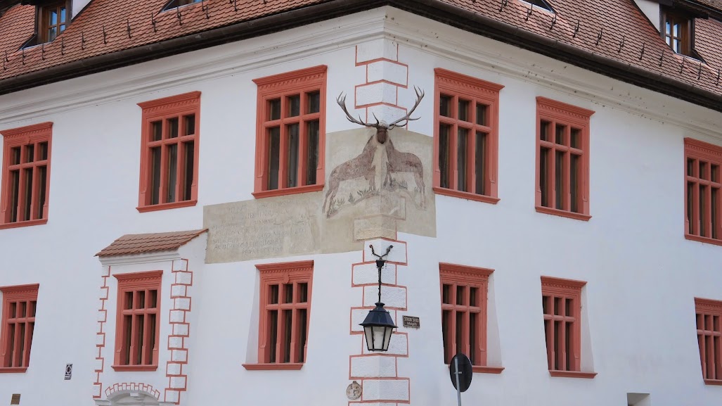 Casa cu Cerb, din centrul cetatii medievale, era in sec. XIII o locuinta rudimentara din lemn, etajul si mansarda fiind ulterior adaugate, in sec. XVII-XVIII. Aici au stat judecatori sau mari fete preotesti,iar acum este centru cultural, hotel si restaurant. Pictura murala exterioara,cu cerbul in marime naturala,avand capul si trofeul montate pe zid, a fost adaugata in timpul ultimei restaurari,intre 1997-2001.